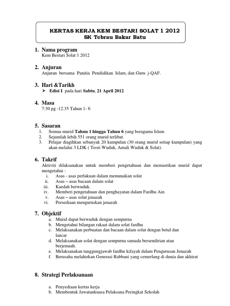 Kertas Kerja Kem Bestari Solat 2012 Pdf